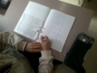 たとえば2×2は4。4より10多いのは14。答えが14になる九九は2×7。というように答えが10大きくなるような九九の組み合わせを探していました。2年生の算数です。なかなか難しく、九九の表を見るなどしながら頭をひねっていました。