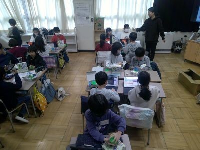 磁石の実験キットを使い、自分で自由に試行錯誤してみて気付いたこと、発見したことをまとめる・・・。3年生の理科の活動です。引き寄せ合ったり反発したりする力をもとに、不思議な動きを見つけていました。