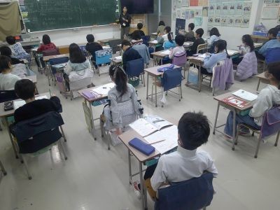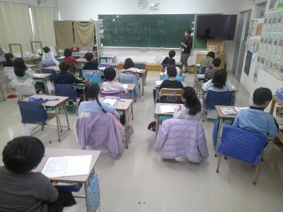 「みかんが何個かあり、10個食べたら残りが94個になった。はじめにみかんは何個あった?」。2年生の算数の問題です。何となく式を立てようとする子がいますが、図に描くなどして問題の状況を理解して取り組むよう学習していました。
