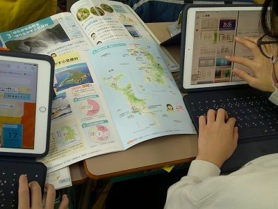 東京都の特色ある地域の一つである小笠原。4年生が社会でその自然などについて調べていました。はるか南の島で、江戸川区とは様子が全く異なります。世界自然遺産にも指定されている様子を学んでいました。