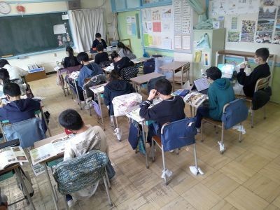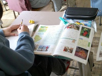 6年生は社会で自分が選んだ国の様子について調べてまとめています。フランスを調べている子が「フランス料理って世界遺産なんだ」と話すと、「和食だって世界遺産」と声がかかり・・・。いろんな国の自然や文化への理解を広げていました。