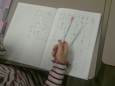 「パンダがいる」「パンがある」。「いる」を使うときと「ある」を使うときの違いは?1年生の国語です。「いる」は主に生き物、「ある」は主に物。「いる」「ある」を使いながら自分で文を作っていました。