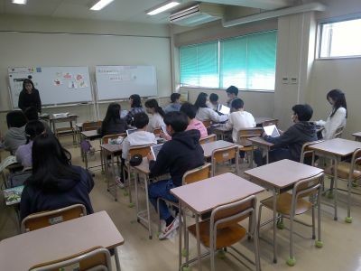 6年生の英語での作文練習。私は宇宙飛行士になりたい。私は星が好き。などの文章を英語に直していきます。いきなりは難しいので、like、stars、I、astronautなど用意してある言葉を選び並べるという方法で進めていました。