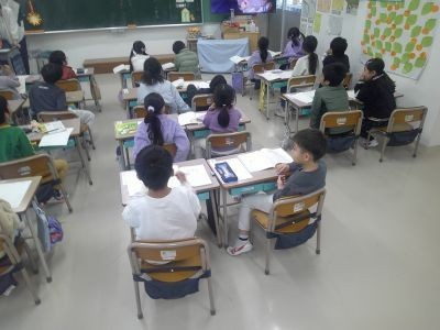 秋まつり、スポーツフェスティバル、ゲーム集会・・・。1年生が国語の学習で自分たちの1年間を振り返り、その様子を文章で書いていました。あったことを誰かに伝えようという活動です。