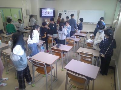 What~do you like?Do you like ~?4年生の外国語活動。友だちと好きなものを尋ね合う活動を行っていました。次々とペアを変えながら、英語でやり取りをすることの楽しさを味わっていました。
