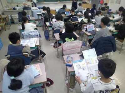 2年生の生活の学習。自分のこれまでを振り返り、それをたとえば新聞にする、ランキングにする、巻物にしてみるなど自分なりの方法でまとめるという活動を進めていました。自分のこれからのパワーになるといいなと思います。