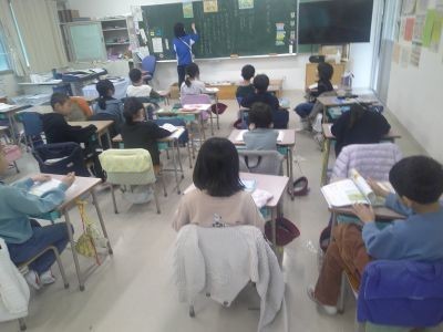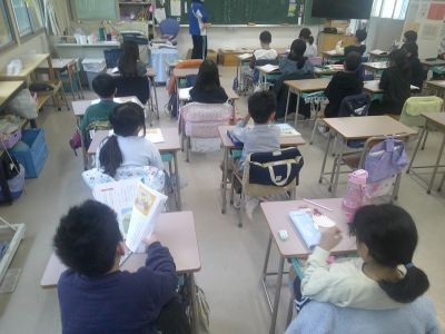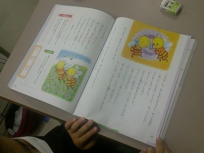 2年生が道徳で「ゆっきとやっち」という話をもとに学んでいました。速く飛ぶ競争をしていたみつばちの子どもたち。一匹の具合が悪くなり、遅くなった友だちを助け、やさしく励ます・・・という内容です。みつばちの気持ちを考えながら、助け合うことなどについて考えました。