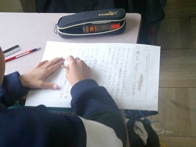 5年生が国語で取り組んでいる「もう一つの物語」。たとえば「桃太郎」の話をもとに、登場人物を変えて作品を書いている子などがいました。完成が近づき、教員に確かめてもらったり、友だちと交流したりする様子も見られました。