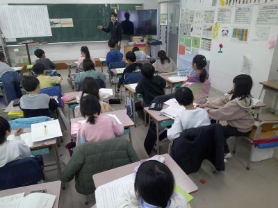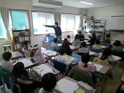 2年生の国語「スーホの白い馬」。スーホの様子がわかるところには赤、白い馬の様子がわかるところには青のラインを引き、その対比をしながら作品を読み深めていました。