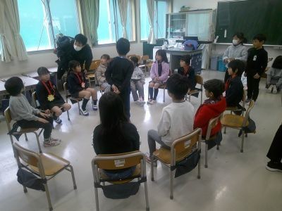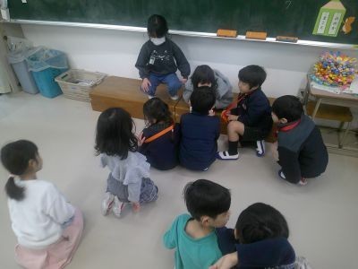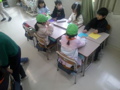 1年生が本を読んで聞かせたり、折り紙を教えたり、一緒にゲームをしたり・・・。1年生は、次の1年生のために、一所懸命準備をして、楽しんでもらおうとがんばっていました。年長のみなさん、小学校で待っています。