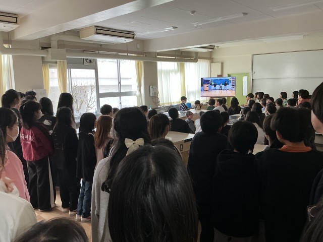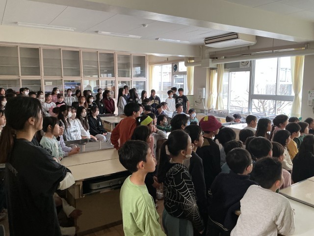 休み時間、家庭科室で映像を通したダンスクラブの発表会を行いました。見たい人はどうぞ、とアナウンスしたところ、大勢の子どもたちが集まり、友だちがカッコよく踊る姿を楽しそうに見ていました。