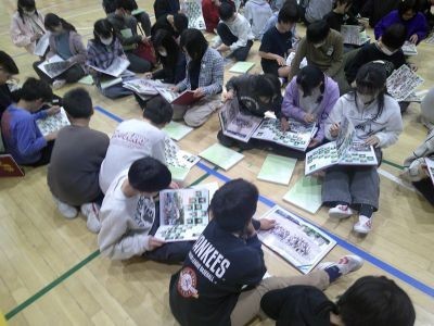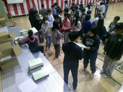 6年生に卒業アルバムを配りました。早速開いてにこにこしながらページをめくる子、自分の写真に見入っている子・・・。白紙のページにお互いのサインの交換をするなどしていました。