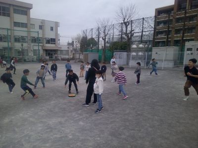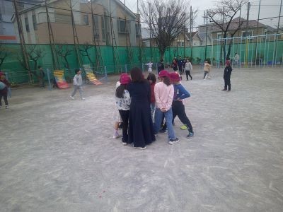 今年度最後の休み時間。幸いまだ雨にはならず、校庭が割り当ての学年は元気に外で遊びました。この学級で過ごす最後の日。みんなで一緒に、思いっきり楽しんでいました。