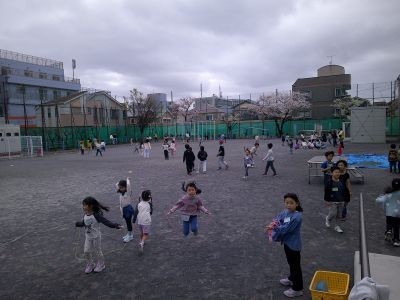 すくすくスクールには入学式を控えた新1年生も参加し、元気に遊んだり、みんなで美味しそうにお弁当を食べたりしていました。