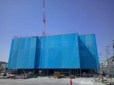 4月はじめの校舎改築の様子です。工事は1階から2階部分へと進み、徐々に姿を現してきています。現在のところ、順調に工事は進んでおり、予定通り1年後には使用開始ができる見込みです。近隣の皆様には引き続きご迷惑をおかけいたしますが、ご理解のほどよろしくお願いいたします。
