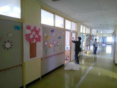 教職員で、月曜日午後の入学式の準備を行いました。体育館、教室、廊下・・・。月曜日の始業式後、最終的な準備を行い、新1年生を迎えます。