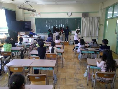 昨日、今日と多くの学級で教室での係の分担などが行われていました。どんな係が必要かを出し合い、名札を使うなどして決めていきます。1つの係に人数が集中すると、自分たちで譲り合ったり、じゃんけんをしたりして折り合いをつけていました。