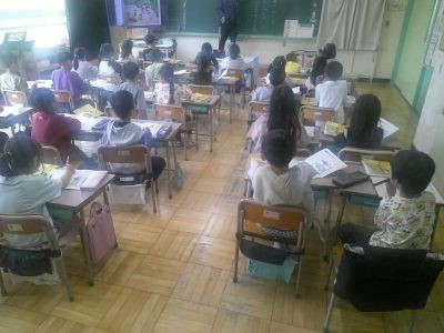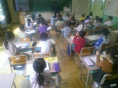 2年生が国語でマス目に文章を書いていく学習を進めていました。原稿用紙の使い方を意識しながら、最初に一マス空けることなど、これまで学んできたことをもとにていねいに書こうとがんばっていました。