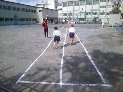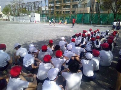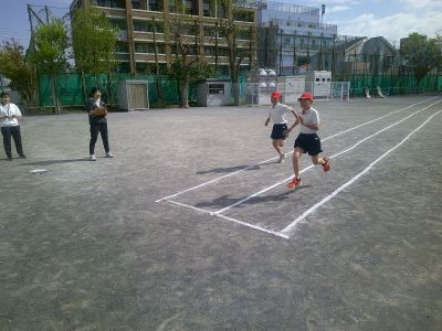 6年生が学年合同で徒競走の計測を行っていました。校庭に目いっぱい引かれた直線コースを全力で走る子どもたち。運動会や10月の区の体育大会などを通して力を伸ばしてほしいと思います。友だちを応援する姿も温かでした。