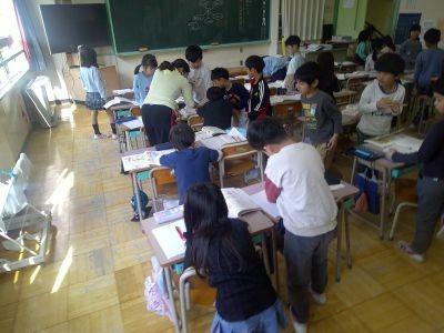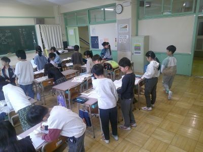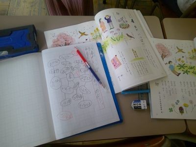 2年生が国語で春にちなんだ言葉を集めていました。入学式>さくら>お花見・・・などイメージを広げている子、友だちと「たけのこって春だっけ?」と話をしながら考える子などいろいろでした。