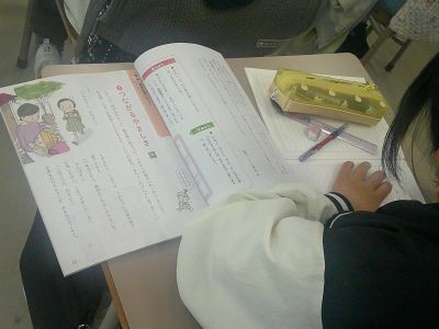 1年生に入学したころ不安なときに優しくしてくれた上級生。自分が4年生になり、不安そうな1年生を見て・・・。4年生の道徳です。主人公の気持ちを想像しながら、優しい気持ちがつながれていくことについて考えていました。