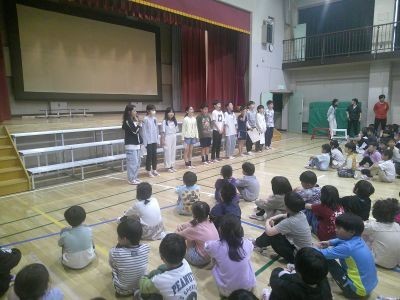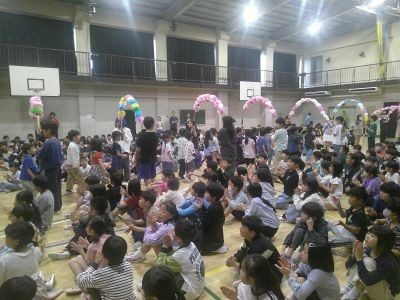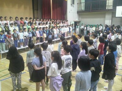 会の最後にはみんなで校歌の合唱。1年生にもしっかり覚えてもらおうと、2~6年生の大きな歌声が響き渡りました。