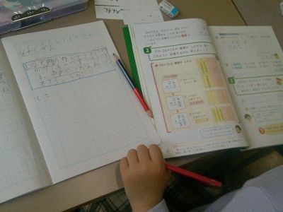「28円のカステラと17円のグミ、合わせていくら?」。2年生の算数は2ケタ+2ケタのたし算です。式を立て、答えの見通しをもち、計算して答えを導く。正確に、そしてできるだけ早く、と練習を重ねていきます。