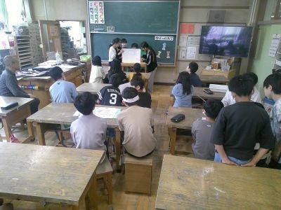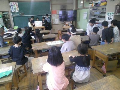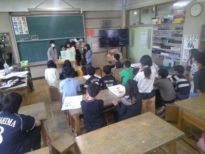 6年生が図工でグループになって取り組んでいた紙芝居。完成したので、お互いに見合う時間を設けていました。とても楽しめる話のストーリー、絵にも工夫や仕掛けがいろいろ。1年生に披露する予定ですが、きっと喜んでくれると思います。