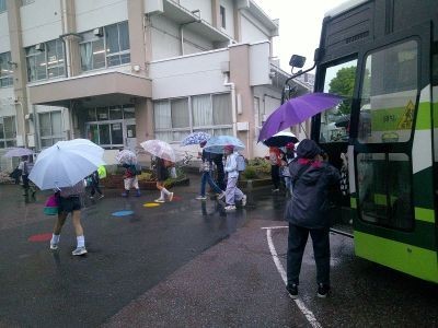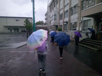 週のはじめは雨の朝となりました。月曜日はいつもより荷物も多めで子どもたちも大変だったと思います。登校班の集合場所やバス停までを見守ってくださった皆様、ありがとうございました。登校後、全校朝会をして一日がスタートしました。