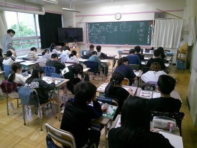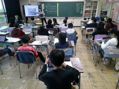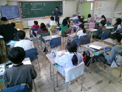 算数で体積の学習を進めている5年生。直方体や立方体の体積に続き、複雑な形をした立体の体積を求める問題に取り組んでいました。バラバラにして考えたり、大きい形からいらない部分を引いて考えたり・・・いろいろなやり方を見つけていました。