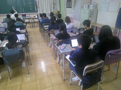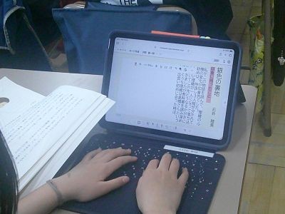 国語で「銀色の裏地」という作品を読んできた5年生。そのまとめとして分かったこと、印象に残ったことを書くという活動を進めていました。端末に書き込んでみんなで共有し、それをもとに自分の考えをまとめていきます。