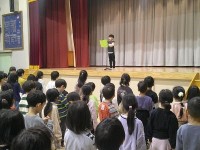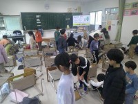 写真は2年1組の給食風景。端午の節句、こどもの日にちなみ、給食室で手作りした530個のちまき。一つずつ巻いた葉を広げてその大きさ、長さに驚きながら「おいしい」と声をあげていました。