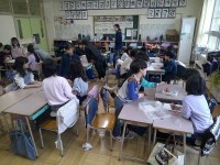一之江小学校に限らず子どもたちのボールを投げる力が課題です。そもそもボールを投げるという機会が少ないということもあります。4年生が体育で投げる運動に取り組んでいました。ネットに的を付けて、そこに向かって投げている子もいました。