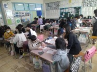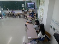 6年生の国語は短歌をつくる活動。日常の生活の中のある場面を、五・七・五・七・七の中に表現しようしていました。中には指を折りながら頭をひねっている子もいました。