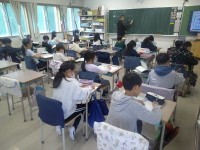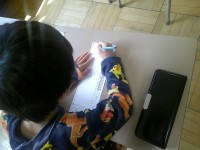 5年生が道徳の学習で「言葉のおくりもの」という作品を読んでいました。テーマはみんなで力を合わせるということ。学校の中の場面を通しながら、友だちのよさを認めていくことなどについて考えました。