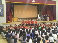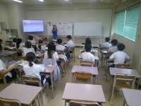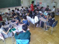 6年生の英語は外国の方に日本のよさを英語で伝えるという活動。端末を使って自分が伝えたい日本のよさをまとめ、友だちとやり取りして修正したり、実際にALTに伝えにいったり・・・。英語でのコミュニケーションを楽しんでいました。