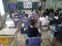 4年生の外国語活動。いくつかの食べ物をもとに「Do you have~?」と尋ね...