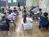 今日は江戸川区の学力調査の日。3年生から6年生までの子どもたちが国語と算数の問題...