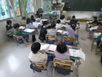 1年生が国語で読んでいるのは「たぬきの糸車」というお話。「たぬきが上手な手つきで...