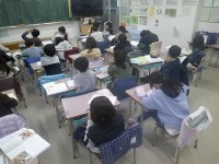 3年生が国語で取り組んでいたのはグループ対抗の漢字クイズ大会。国語辞典を使うなど...