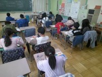 社会で世界の国を調べている6年生。こちらの学級では調べてまとめたことを友だちに発...