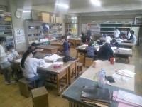 6年生が図工で取り組んでいたのは紙芝居づくり。グループごとに一之江小学校にちなん...