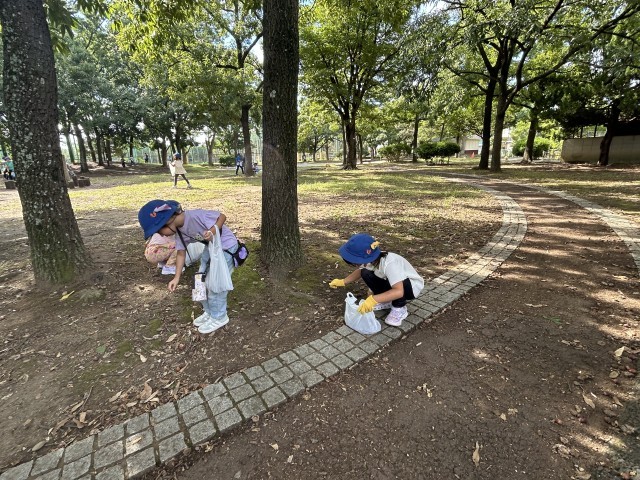 1年生は篠崎公園に秋見つけに来ました。虫取りカゴと網も持って、準備万端。