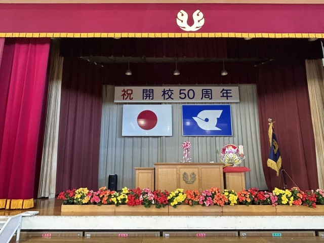 今日は、開校50周年記念式典の日。5.6年生は50周年記念式典に参加しました。5年も6年も立派に学校代表の勤めを果たしてくれました。