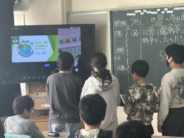 15日の月曜日に6年生は気仙沼小学校とのオンライン交流を行いました。それぞれの調べたことについてプレゼンテーションをした後は、質問や回答をして意見交流をしました。自分たちとは違う地域に住む友達と違った視点から地球温暖化や津波の被害、地球環境などについて考えることができました。遠く離れていても交流ができる素敵な時間でした。気仙沼小学校の皆さんありがとうございました。