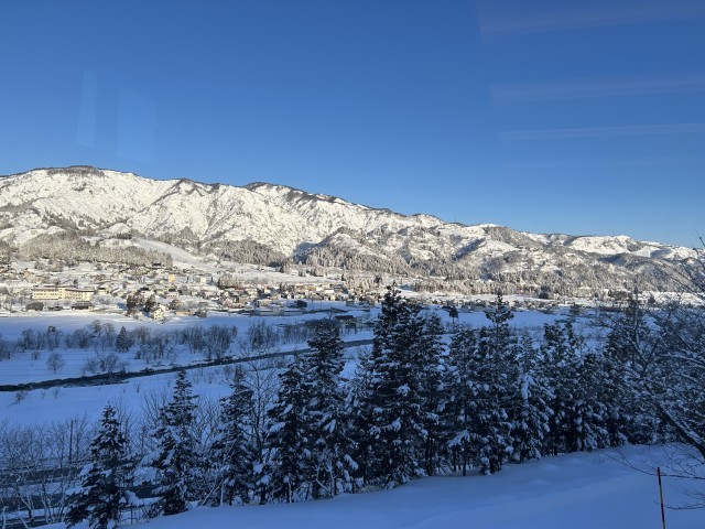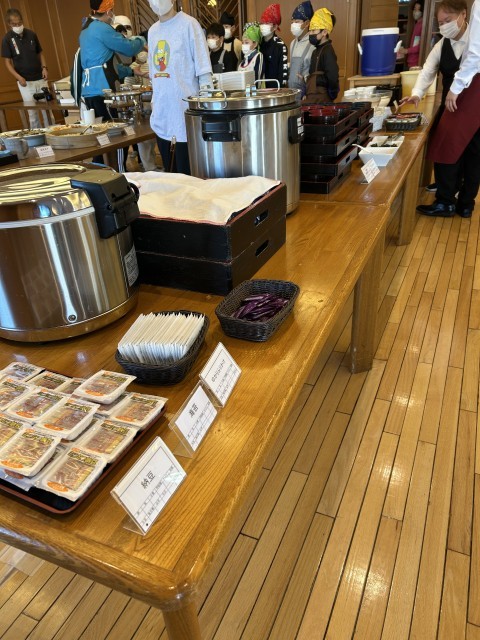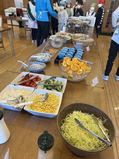 快晴です。美しい山並みを見ながら、朝食はバイキングです