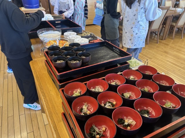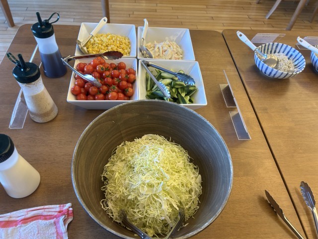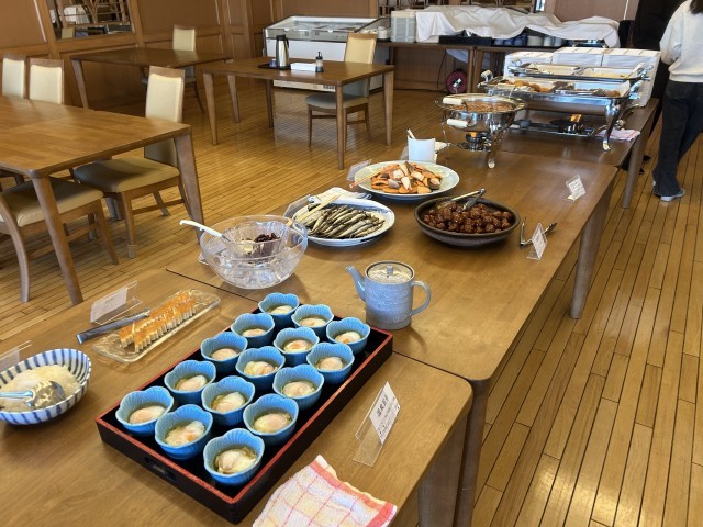 最後朝食となりました。美しい山並みを見ながら美味しくいただきましたます。食事係の皆さんが準備してくれています。