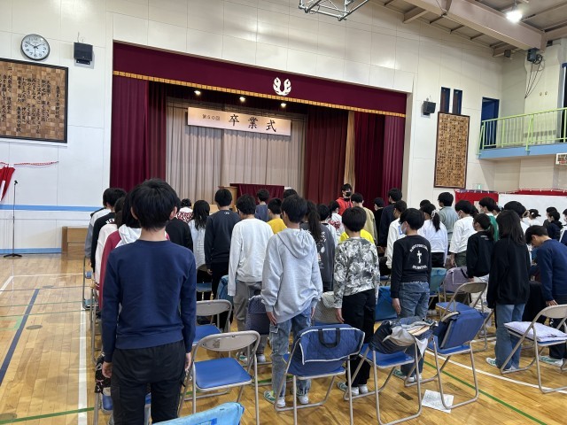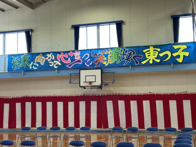 紅白幕が張られて、会場準備も整い始めた体育館て、卒業式の予行を行いました。5年生も参加して、6年生の立派な姿を目に焼き付けました。