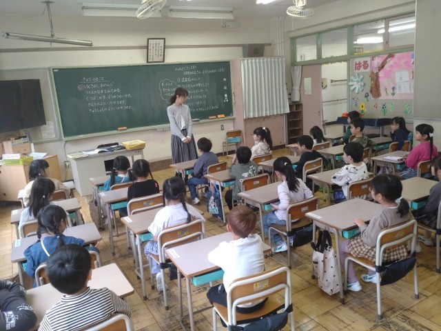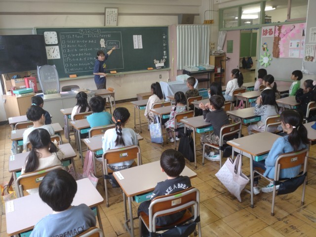いよいよ小学校生活がスタートする1年生の教室です。どのクラスも先生の話をしっかり聞いています。何事も始めが肝心。丁寧に指導してまいります。