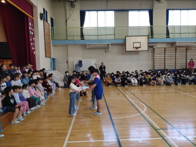 4月9日、体育館にて1年生を迎える会が行われました。花のアーチの中を、嬉しそうに入場してきた1年生。在校生に歓迎の言葉をもらい、期待に胸を膨らませています。4年生から素敵なプレゼントも頂きました。いよいよ、鹿骨東小学校の仲間入りです。